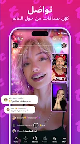 إنه منصة حيوية لعشّاق التواصل والبث، تجمع بين البث المباشر، وغرف الدردشة الصوتية، والمكالمات المرئية، والألعاب التفاعلية في تطبيق واحد فقط.