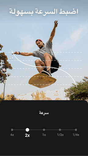 - التحكم في السرعة لتطبيق تأثيرات الحركة البطيئة أو السريعة.