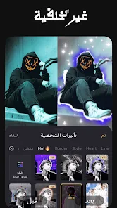 - 🌈 حرية إبداعية: مئات التأثيرات والانتقالات لتخصيص مقاطعك.